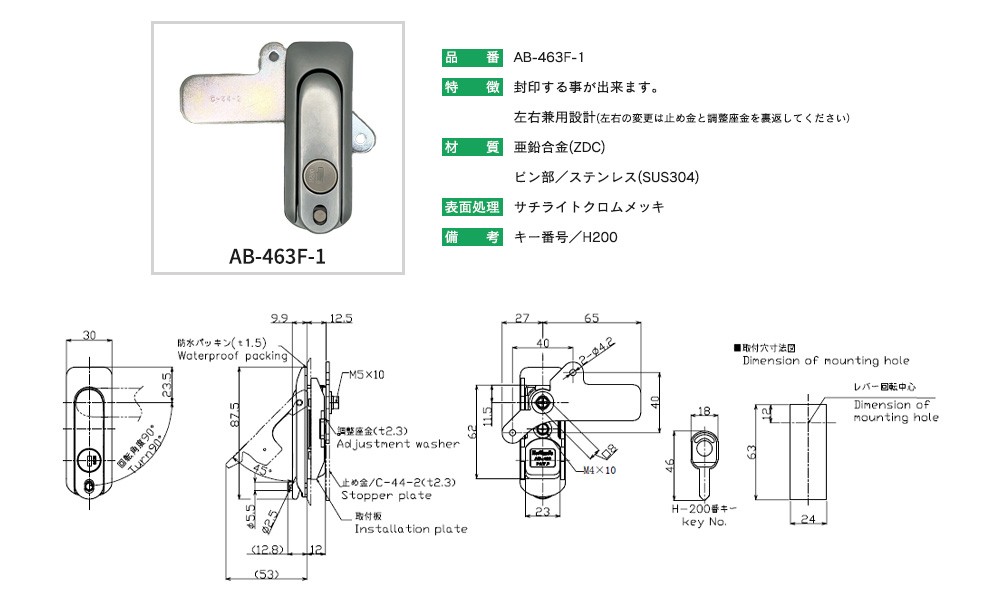 この度、封印付薄型平面スイングハンドル(AB-453-1)の製造が終了することとなりました。